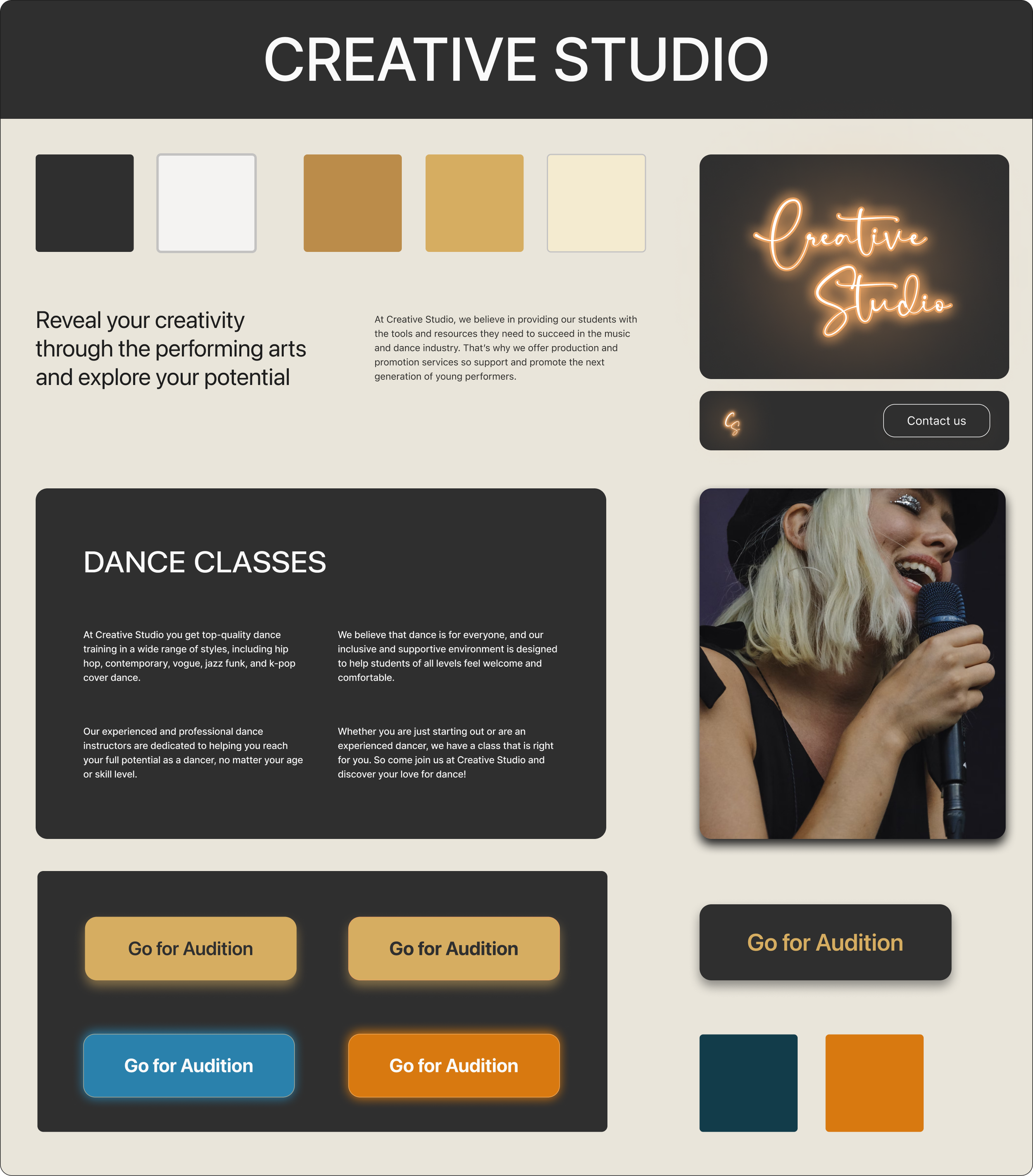 This project was an individual study during my UX/UI bootcamp, where I chose to design a landing page for Creative Studio, a performing arts space dedicated to nurturing young talent in dance and music.